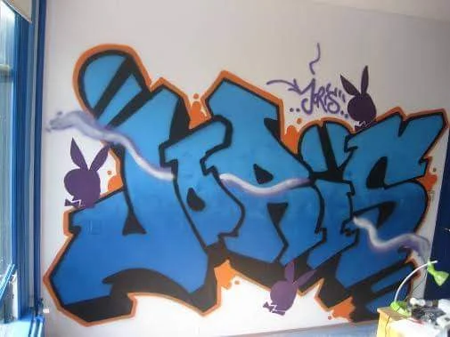 Joris’ slaapkamer was mijn allereerste opdracht binnenshuis. Na een toevallige ontmoeting bij een legale graffitimuur mocht ik mijn talent inzetten voor een gedurfde ‘Playboy’-piece. Dit project markeerde het begin van mijn carrière in persoonlijke muurdecoraties.