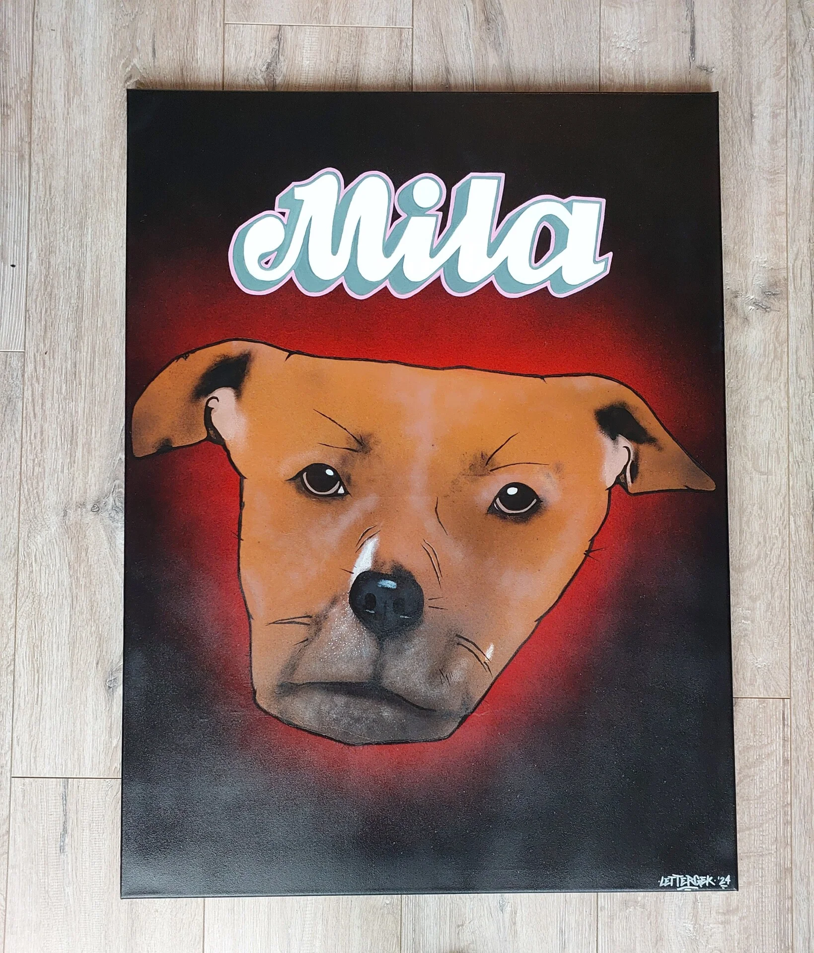 Dit portret heb ik mogen maken voor de eigenares van Mila, haar trouwe en schattige hondje. Het was een unieke kans om haar maatje op een bijzondere manier te vereeuwigen. Het portret straalt liefde en warmte uit, precies zoals de band tussen hen. De combinatie van kleuren en details maakt het tot een uniek eerbetoon.